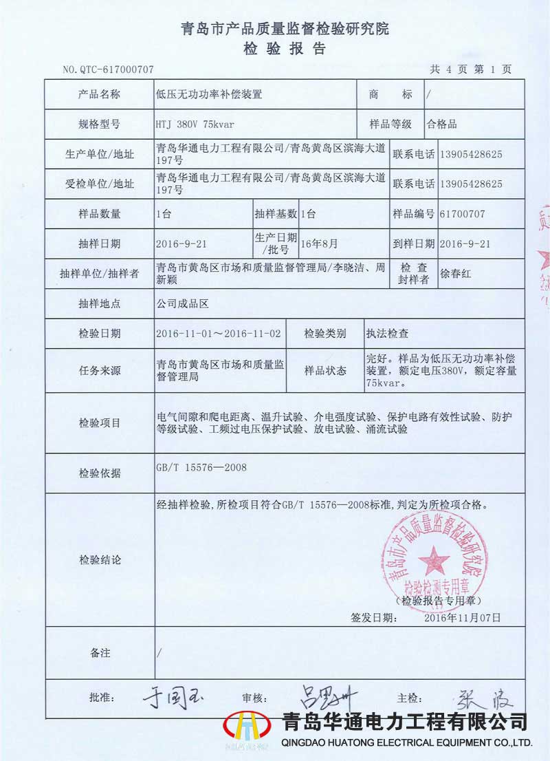 低壓無(wú)功功率補(bǔ)償裝置檢驗(yàn)報(bào)告