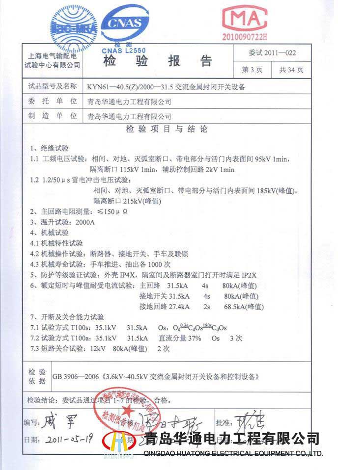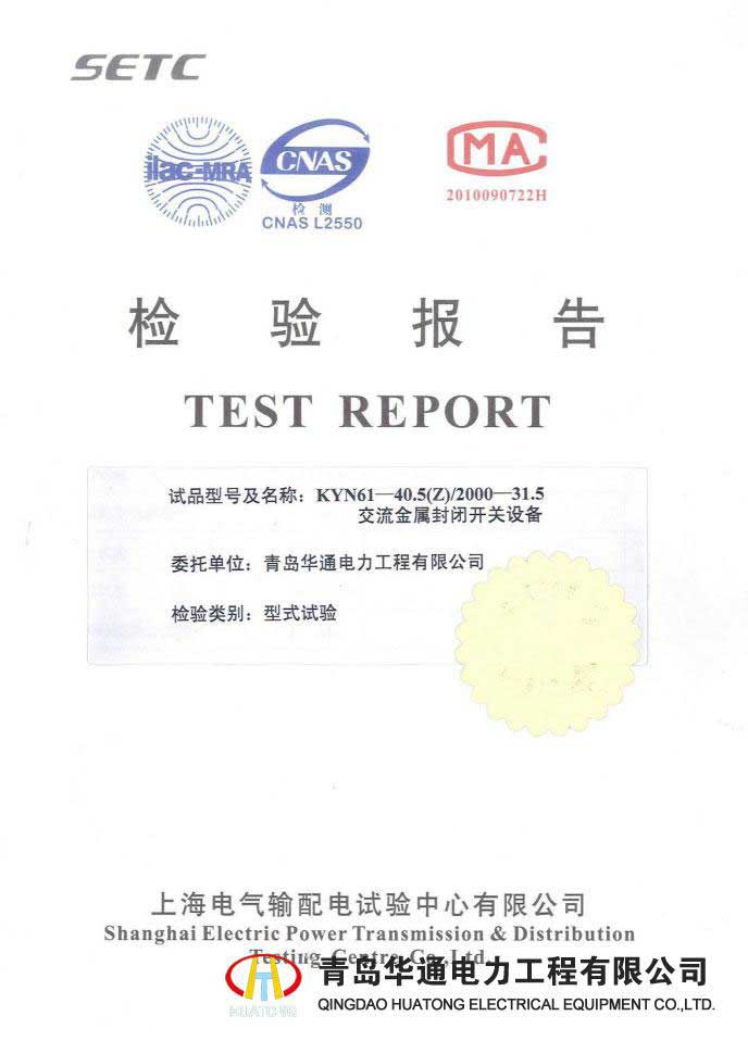 KYN28A-12高壓開關(guān)柜型式試驗報告