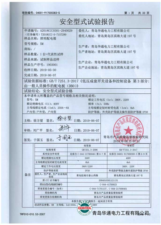 XL-21低壓開關(guān)柜檢驗報告